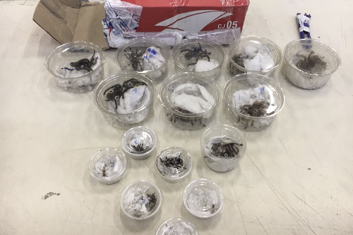 Um lagarto leopardo e 64 aranhas caranguejeiras eram mantidos irregularmente em imóvel residencial. O criadouro clandestino foi descoberto após interceptação pelos Correios de encomenda procedente do Chile que continha 15 aranhas. O responsável foi autuado.