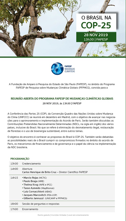 Inscrições em: http://www.fapesp.br/eventos/brasilcop25/inscricao