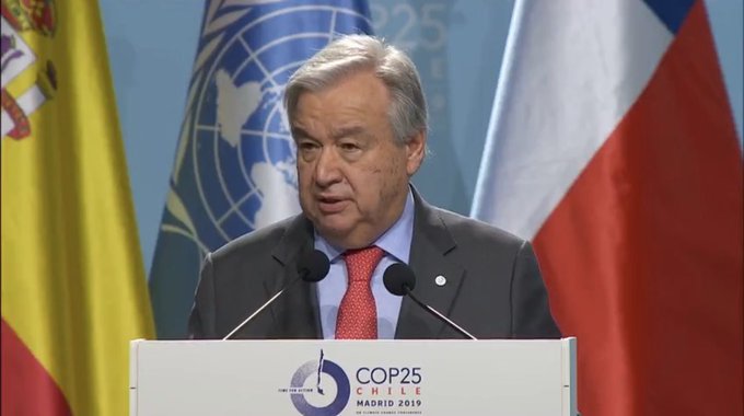 Falando em uma mesa-redonda com chefes de Estado e de governo presentes na COP25, Guterres pediu que eles liderassem, em um momento em que a opinião pública sobre o meio ambiente está evoluindo muito rapidamente, e cidades, regiões e a comunidade empresarial estão agindo para enfrentar a crise climática.