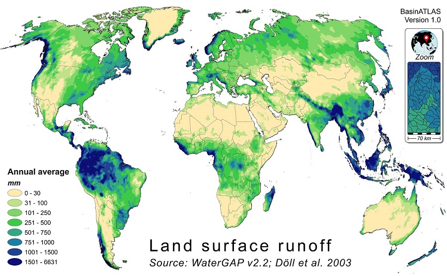 O HydroATLAS oferece um compêndio global de sub-bacias hidrossambientais e características de alcance de rios com resolução de 15 arc-segundos.