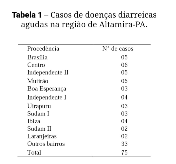Já de acordo com dados de pesquisadores publicado em 2022 : Análise da qualidade da água distribuída na cidade de Altamira-PA a situação é preocupante com alto índice de diarréia entre a populaçã eles trabalharam com dados do Ministério da Saúde.