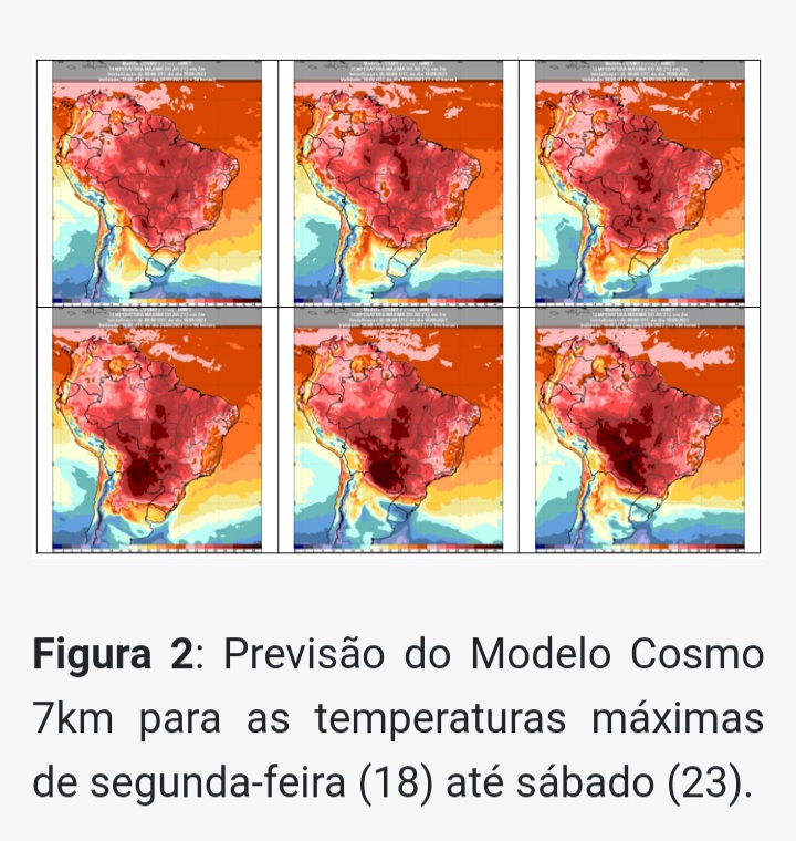 Vale destacar que este aviso será reavaliado diariamente para possíveis ajustes, especialmente, na área de atuação do fenômeno. O panorama previsto pelos meteorologistas do Inmet aponta uma possível piora da situação a partir de sexta-feira (22). As temperaturas máximas devem passar dos 40°C em áreas das regiões Centro-Oeste e Norte, além do interior de São Paulo, especialmente (figura 2). Na capital paulista, são esperadas temperaturas máximas acima dos 35°C a partir de sexta-feira.