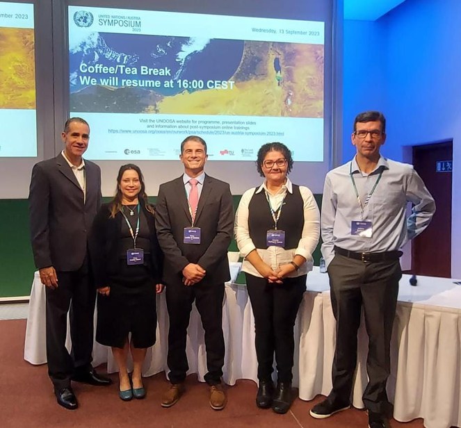 Durante os dias 12 a 14 de setembro, os servidores Alessandra Gomes e Lincoln Alves participaram do Simpósio “Space for climate action: space applications and technologies for sustainability on Earth” (“Espaço para ação climática: aplicações espaciais e tecnologias para a sustentabilidade na Terra”) promovido pela ONU (UNOOSA) em Graz, Áustria.