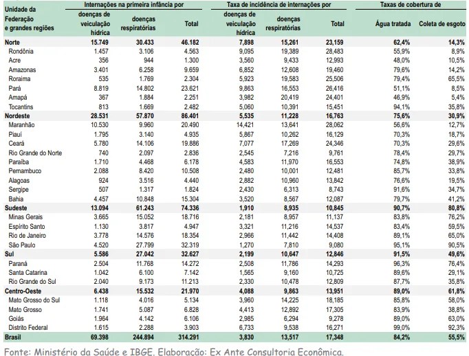 Em 2022, segundo dados do Ministério da Saúde e do IBGE, foram mais de 314 mil internações na infância por doenças de veiculação hídrica e respiratórias.