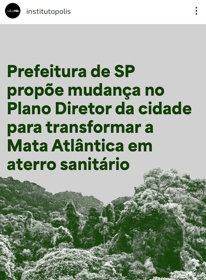 Contrariando as premissas do atual Governo Federal que trabalha no intuito de alavancar o Brasil como liderança em política públicas ambientais elencando questões relacionadas ás à saúde ambiental; proteção da biodiversidade; impacto das mudanças climáticas; mobilidade urbana; controle da poluição do ar e valorização dos catadores de reciclagem bem como participação popular na elaboração destas políticas a atual gestão da prefeitura da Cidade de São Paulo vem realizado alterações no Plano Diretor da Cidade que foi construído na festa anterior com a participação da sociedade sofreu modificações pela gestão atual que priorizam empresas da Construção Civil promovendo o investimento de construções de condomínios em toda a Cidade de São Paulo e para dar viabilidade a este processo em andamento desde o período pós-pandêmico foram também realizado o Plano de Gestão de Resíduos que prevê a construção e ampliação de aterros em pontos periféricos da cidade alguns deles localizados em áreas que deveriam estar em um Plano de Proteção Ambiental.