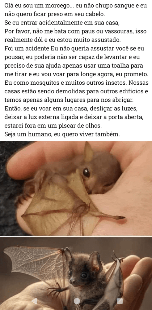 Cabe ressaltar que os morcegos, ao adquirem a raiva, podem apresentar mudanças em seu comportamento, tais como atividade alimentar diurna e caídos no chão.