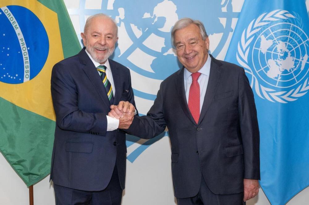 Foto: O secretário-geral António Guterres se reúne com o Presidente Lula do Brasil no primeiro dia do debate geral da 79ª sessão da Assembleia Geral, em 24 de setembro de 2024.